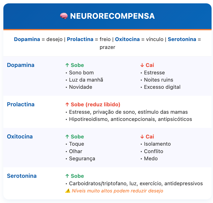 Prolactina: age como freio, reduzindo interesse, testosterona e energia sexual.