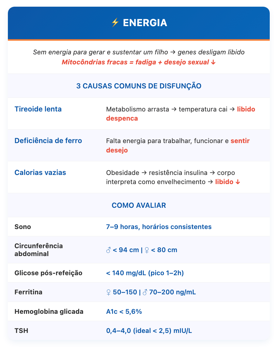 As turbinas que produzem essa energia são as mitocôndrias. Mitocôndrias fracas causam fadiga e derrubam o desejo sexual.