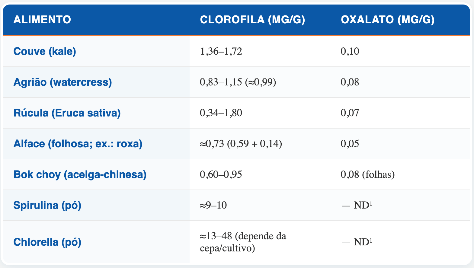 🔵🟠 Alimentos ricos em clorofila e pobres em oxalato